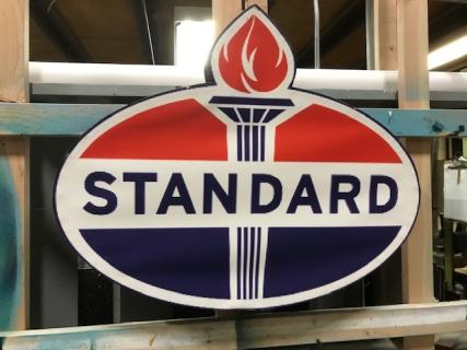 STANDARD sign, Vintage Standard oil & gas, printed vinyl on wood frame, lighting option