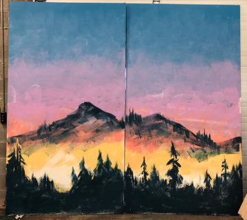 Two Broadway flats join to create a mountainous backdrop. Jacks have been struck from flat for storage, but I can send those with if needed.
