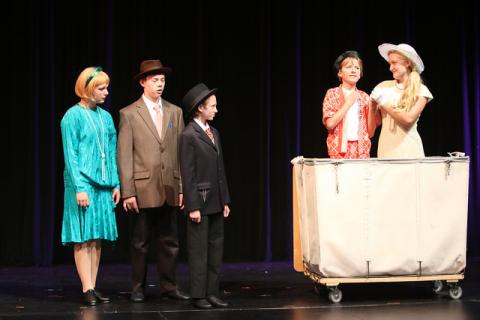 We have a large laundry cart with a lid, perfect for Thoroughly Modern Millie or Annie available for local rental (located in Pleasant Hill, CA). Dimensions are 32"w x 45"l x 39 1/2"h.