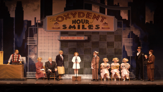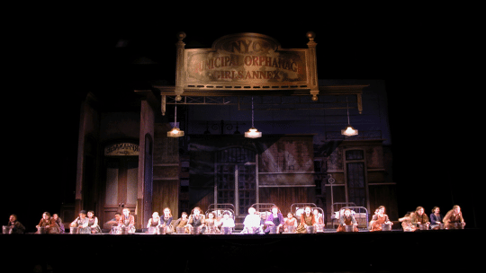 Constructed in 2003, this one trailer rental designed by Kenneth Foy has multiple drops, hangers and props that fit most theaters with plentiful line sets (approx. 35). Our set features iconic locations including a magnificent mansion, an ominous orphanage, and a delightful Times Square!
