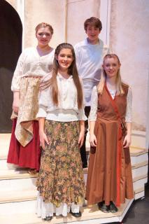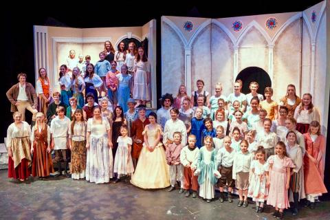 Beautiful hand-made costumes (with adjustable elastic for sizing options wherever possible) are available for rental as a full set or individual costumes (requires a minimum of 40 costumes).   Priority given to full set rentals.  We cast and costumed 60 actors, ages 6-18, in multiple roles and most lead roles were played by middle and high school students.  MANY ENHANCEMENTS and EMBELLISHMENTS have been completed (post-show) made to costumes shown in the above photos.