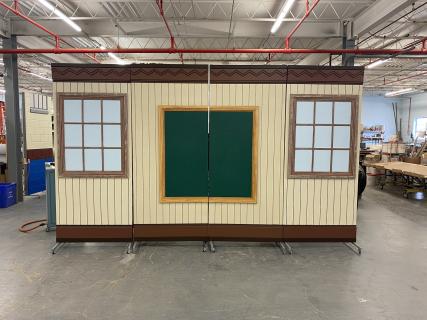 Each scene includes four 4x9 panels on casters to allow for easy scene changes. The panels are double sided to accommodate the flow of your production. They are lightweight to be easily moved by a younger stage crew yet sturdy enough to endure the wear and tear of a full production.