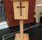 Electric Chair: 7'-0"h x 2'w x 34"d Giant American Flag, Backdrop: Muslin BHHS "AM I HIGH" Banner, Muslin, Flouresce under blacklight Poor Box Retro Chrome Diner Barstools